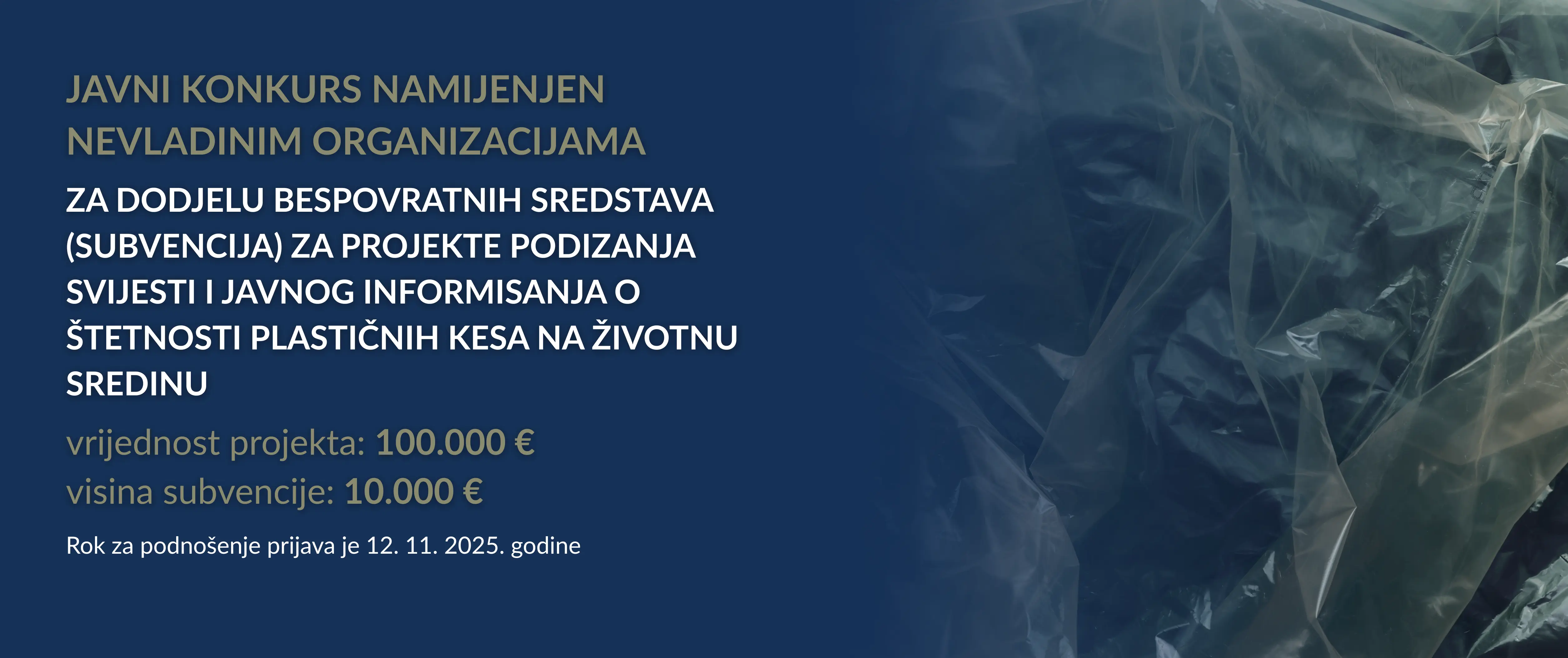 KONKURS U TOKU: Javni poziv za dodjelu bespovratnih sredstava (subvencija) za projekte podizanja svijesti i javnog informisanja o štetnosti plastičnih kesa na životnu sredinu05.10.2025
